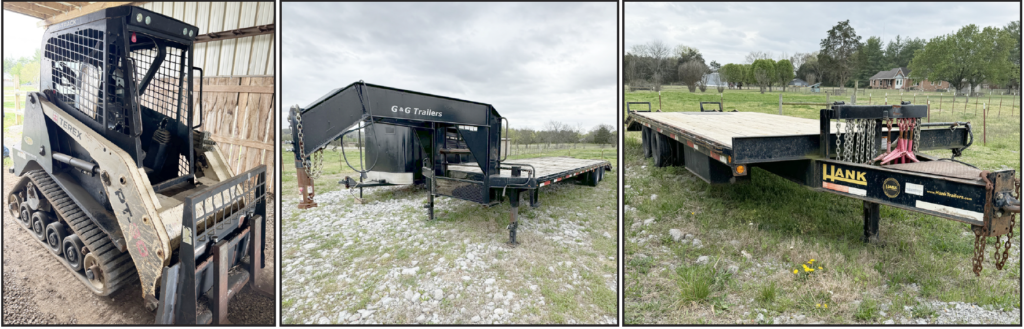 2011 Terex PT30 MTL w/ Smooth-Edge Bucket / High-Capacity Light Material Bucket / Set of Forks - 2139Hrs • Hank 20+5 Tandem Dually Pintle Trailer w/ New Running Gear & Deck by Hank Williams • G&G 27+5 Tandem Dually Goose Neck Trailer • 16' BH Cattle Trailer w/ New Axles & Tires