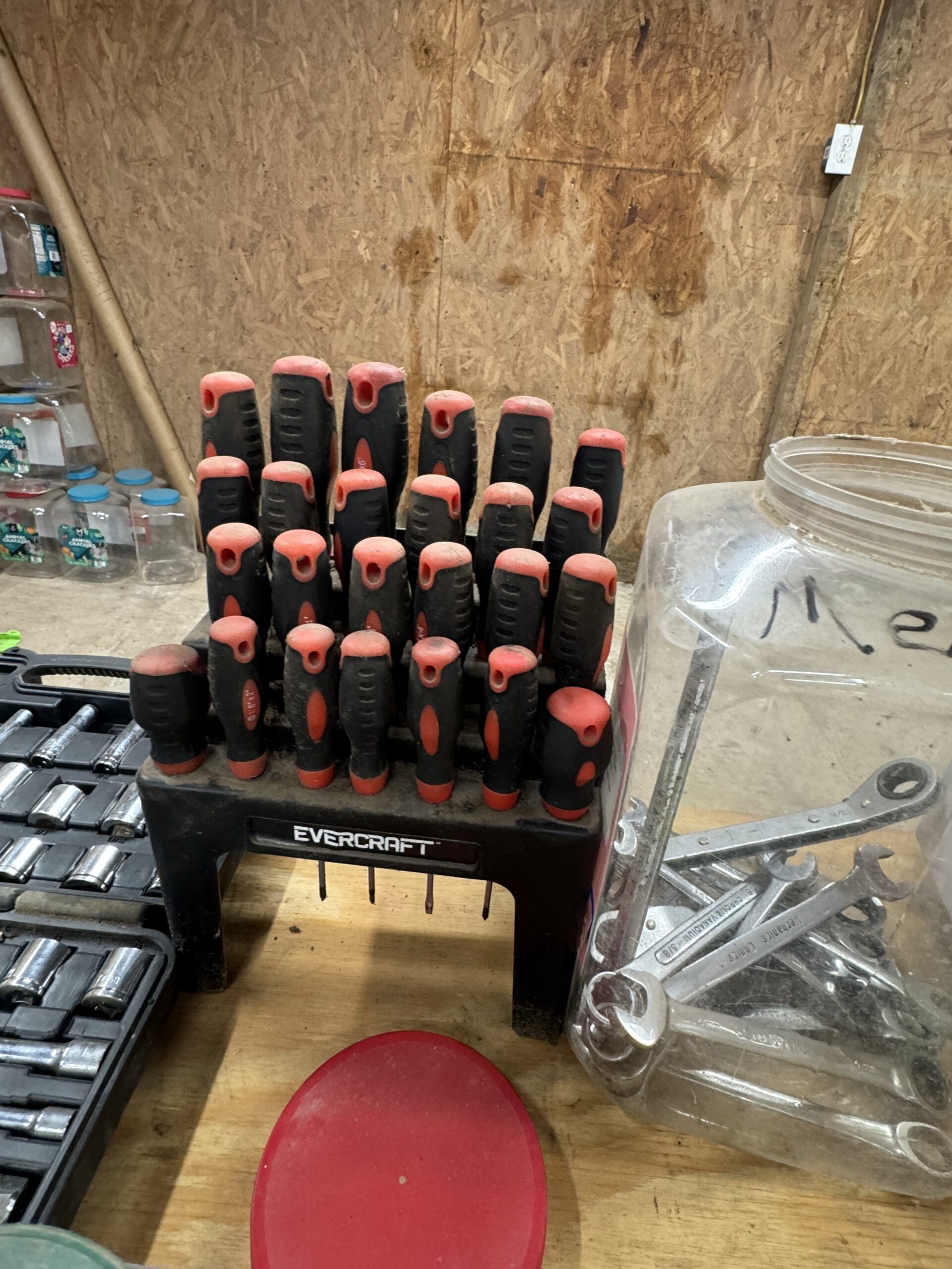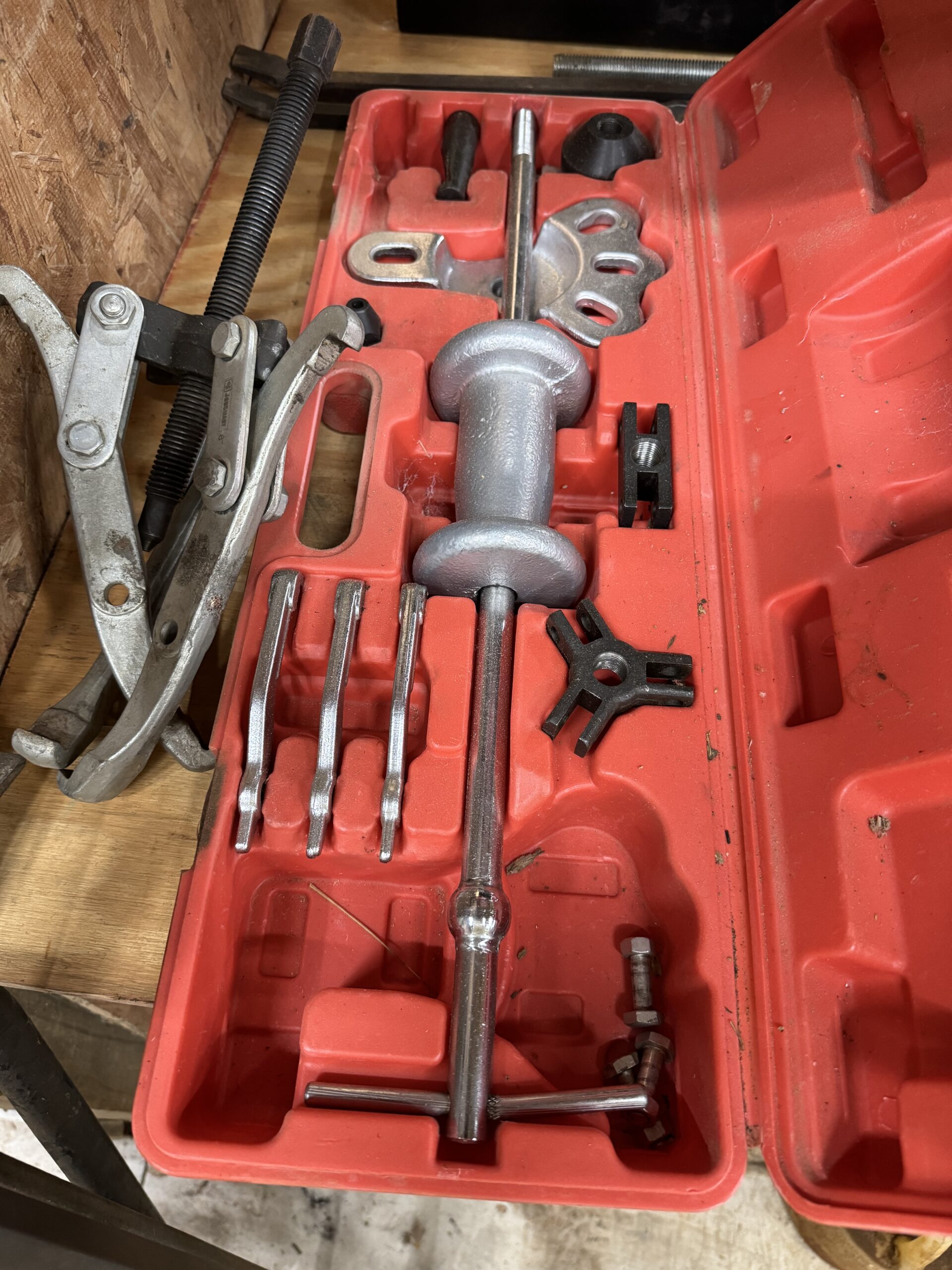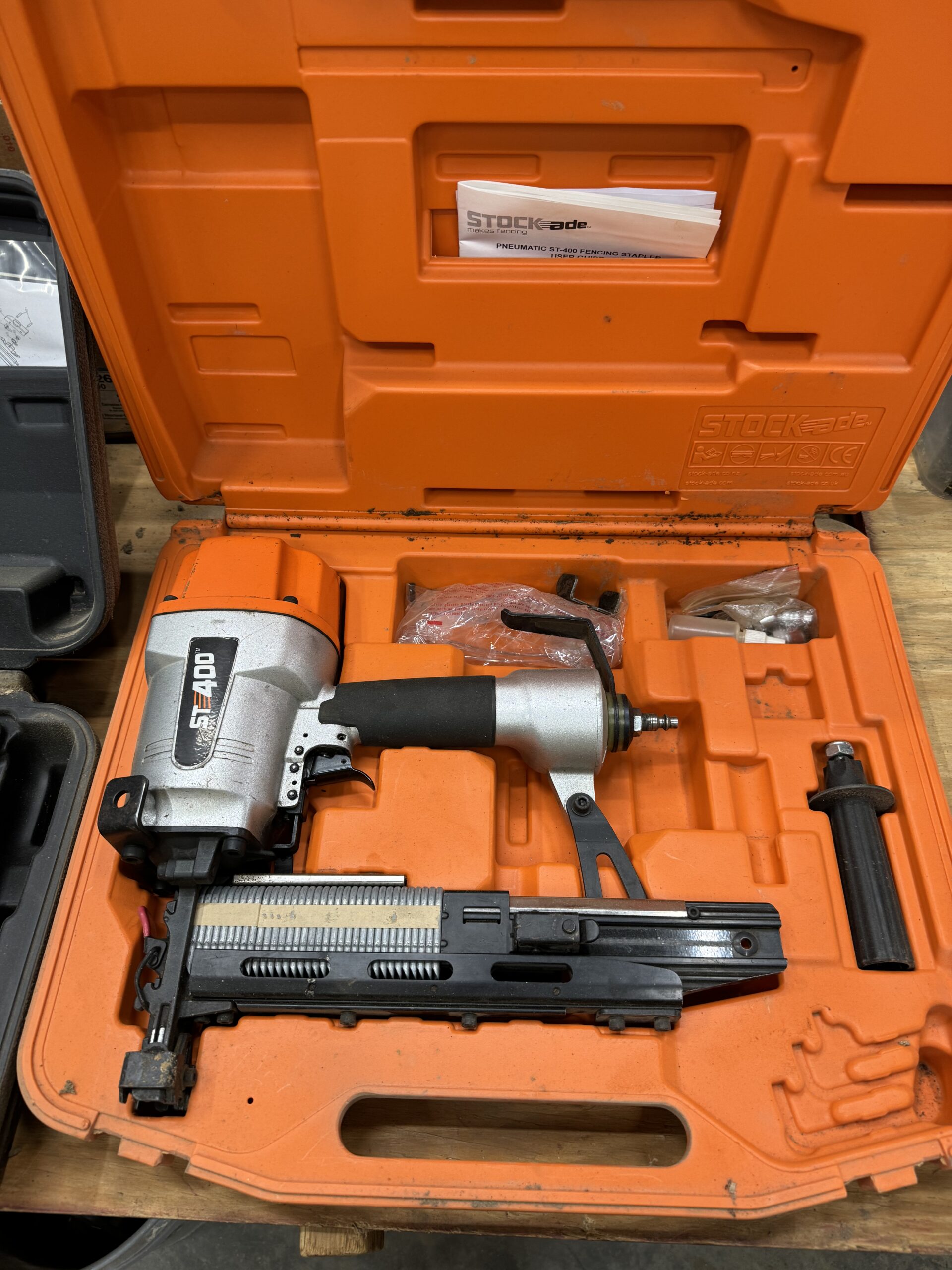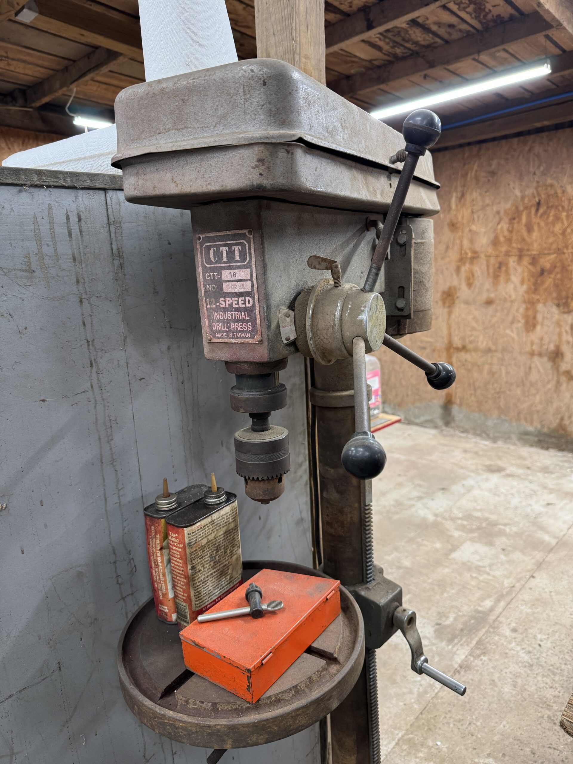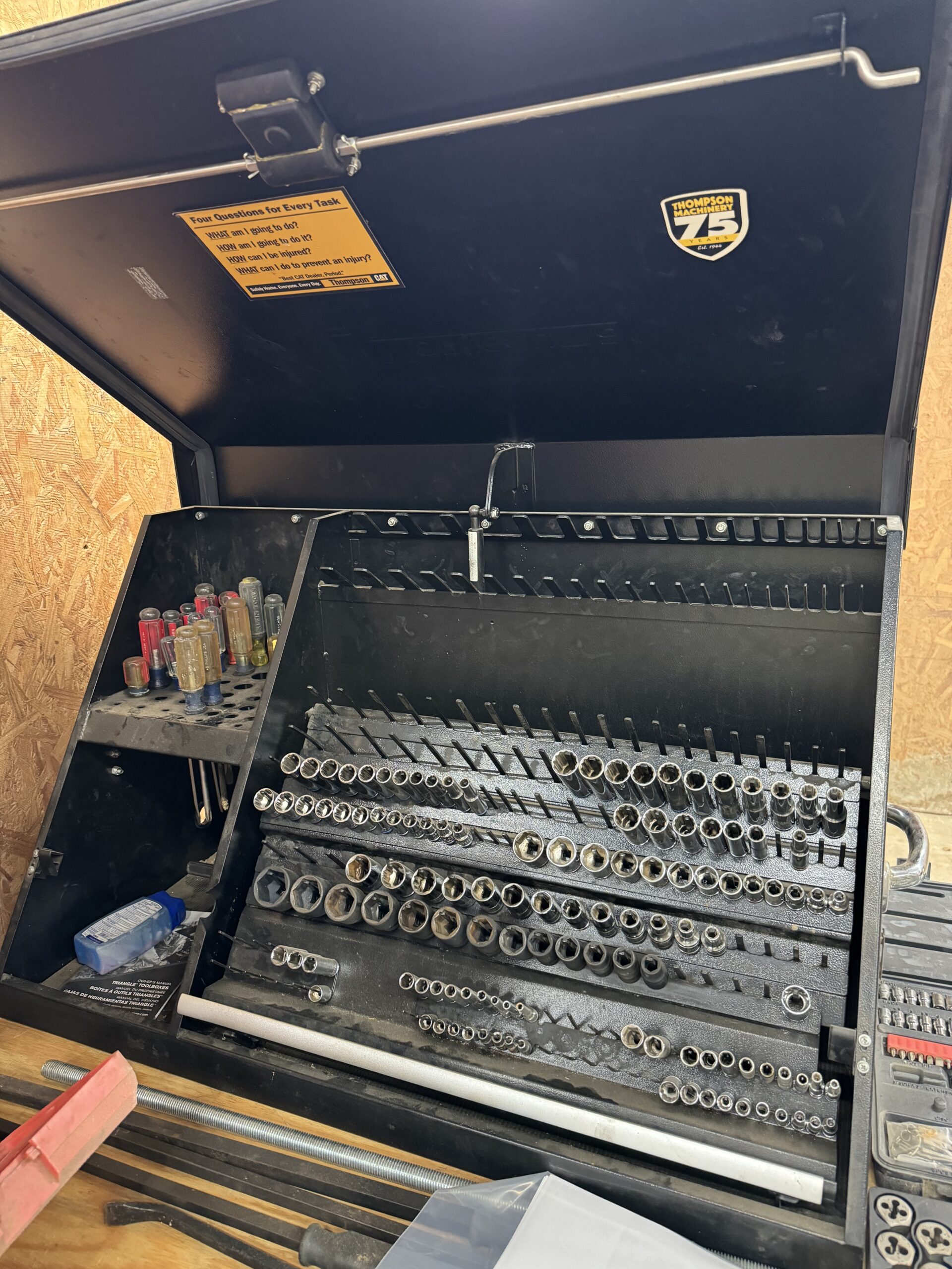 Engine Hoist • Hydraulic Hand Pump 3000 PSI • Pipe Bender • Hydraulic T-Post Driver • Pallet Jack • Versa Front Tyne Tiller • 12-Speed Drill Press • Milwaukee Fish Tape / Grease Gun / Chargers • Rap-A-Nail Air Gun / Nails • Stockade Fence Stapler Air Gun / Staples • Rigid Nail Gun • Misc Sockets / Wrenches / Screwdrivers • Montezuma Tool Box / Sockets • Ryobi Weed Eater / Hedge Trimmers / Drill / Sawzall • Lawn / Garden Tools • 1/2" Drill • Skil Saw • B&D Sawzall • MaxiVac Vacuum • Come-Along • Heavy Clamp • 6' Fiberglass Stepladder • 4-Leg Chain Sling • Rigid Shop Vac • Air Tank • Re-Max Backpack Sprayer • Hammers • Bolt Bin / Bolts • Road Cone Holders • Fasteners • Screws / Bolts / Etc • Tap & Die Sets • Air Hose • Tarps • Chains / Chain Binders • Plumbing Supplies • Electrical Supplies • Propane Heater • Castrol Transynd Hydraulic Fluid &Transmission Fluid • Assorted Caterpillar Skid Steer / Mini Excavator Replacement Teeth • Briggs & Stratton 11.5 Horizontal Engine • Storage Cabinets • Trailer Parts • Metal Cabinet • Drying Foam • Shrink Wrap Handles