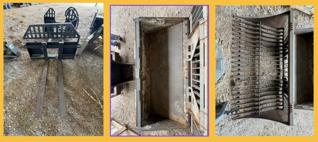 Hydraulic Driven Spray Attachment • Hay Spear • Gin Pole • FAE High-Flow Mulcher • A66 Harley Rake • CID Broom • FAE High-Flow Stump Grinder • CID Pallet Forks • Auger Drive • Auger Bit Stand • 9" Rock Auger Bit • Scoop and Go Concrete Mixer • EB100 Hydraulic Jackhammer • Freshly Rebuilt KF6 Bare Hammer • XR Trencher 48" Deep X 6" Wide • CID Tree Shear • Grizzly Rock Bucket • CID Smooth Bucket • CID Hydraulic Adjustable Pallet Forks • Root Bucket