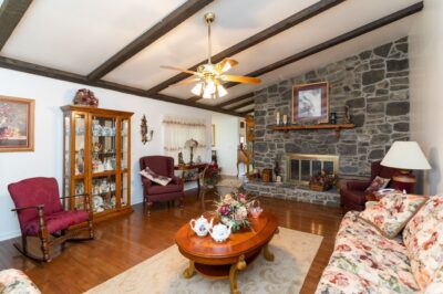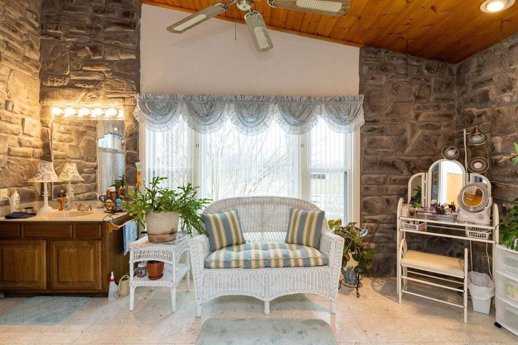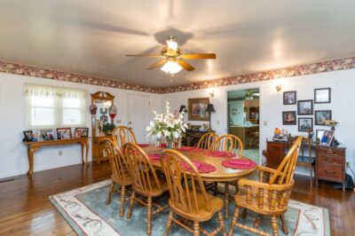 Beautiful ranch home with full basement, (approx. 1433 S/F finished) in park-like setting on 18.14 picturesque acres w/2 barns, white vinyl fence, open fields and tree dotted pastures. Basement consists of large rec. room/kitchen/living are combination