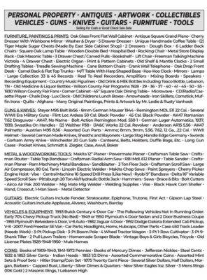Personal Property • Antiques • Artwork • Collectibles • Vehicles • Guns • Knives • Guitars • Furniture • Tools