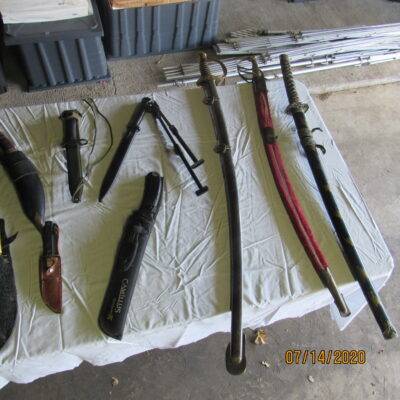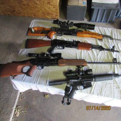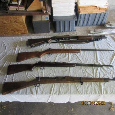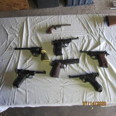 Steyer M95 Bolt 8x56 • 8mm German Mauser 1944 • Remington MDL 511 22 Cal. • Several WWII Era Military Guns • Flint Loc Ardesa 50 Cal. Black Powder • 45 Cal. Black Powder • AK47 Romanian 7.62 Draguwov • AK47, No Name • Bolt Action Remington Mod. 550-1 • German Luger Automatics, 1937, 1939, Swastika On Handles • (2) Walther P38 • IJA&C Works 22 Cal. Revolver • Anderson AR15 5.56 • AK47 Palmetto • Austrian M95 8.56 • Assorted Gun Parts • Ammo; 8mm, 9mm, 5.56, 7.62, 12 Ga., .22 Cal. • WWII Helmet • Several German Made Knives, Sheaths and Bayonets • Large Stag Handle Edge Germany • Swords • Gorham Army Knive • Winchester 20 Gun Safe • Canteens, Belts, Holsters, Duffle Bags, Etc. • Long Gun Cases • Pocket Knives, Schmidt & Ziegler, Case, Awvil, Boker