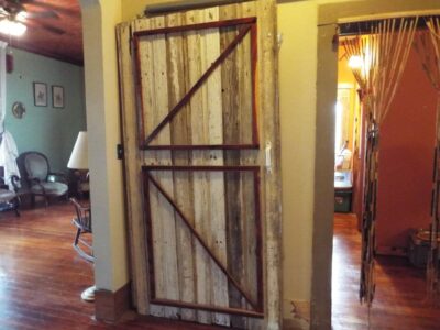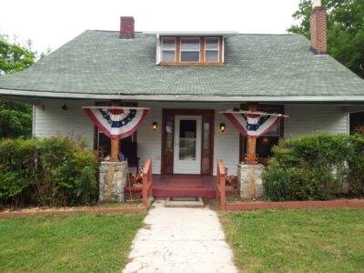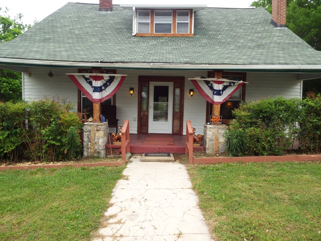 HISTORICAL Craftsman home with rustic features throughout*DETACHED GARAGE/WORKSHOP W/ELECTRIC* covered GAZEBO + covered BBQ PAVILION*chainlink fence*Living&parlor have 10 ft tongue/groove ceilings and French doors-wood & laminate flooring (no carpet) wide baseboards-a lot of original exposed wood*has supplemental natural gas heaters along with HVAC*Arch from LR to hallway* sliding barn doors*Large kitchen and dining area with trac lighting/unique textured ceilings*stainless gas stovetop& double oven+SS frig*combo laundry rm/office area with wood walls*Upstairs 2 bedrooms, full bath and 2 HUGE walk-in closets + small flex room*window A/C's in upstairs area & natural gas wall heaters*HVAC downstairs* garden spot*2 driveways* section of lot behind detached garage/rock fence is also part of the property*Conventional, in-house bank loan or cash only per seller