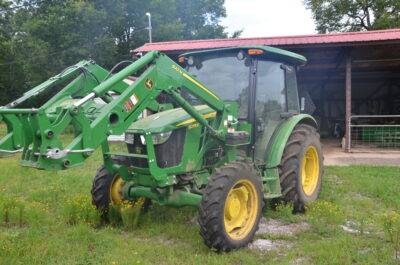 John Deere 5075E Cab Tractor, H&A, 4x4, L/H Reverser, John Deere520M Loader with Bucket & Hay Spear, 506 hours • John Deere Pallet Forks • John Deere 709 3-Pt Bush Hog • Krone AM 283 5 Disc Mower • 6 Roll Bale Wagon • Woods BB700 7-ft. Box Blade with Hydraulic Teeth • Baltic 3-Pt Seed/Fertilizer Distributor • 16’ B/H Tandem Axle Trailer • 3-Pt Carryall • Lawn Sweeper • 3 Push Mowers • 6 Hay Rings • 10’ & 12’ Cattle Panels • 90º Cattle Sweep • Bunk & Creep Feeders • Single Bog Disc • Metal Feed Trough • Water Trough • Spec Co Log Splitter • 3-Pt Hay Spear • Side Delivery Hay Rake • Hydraulic & Gear Lube Oil