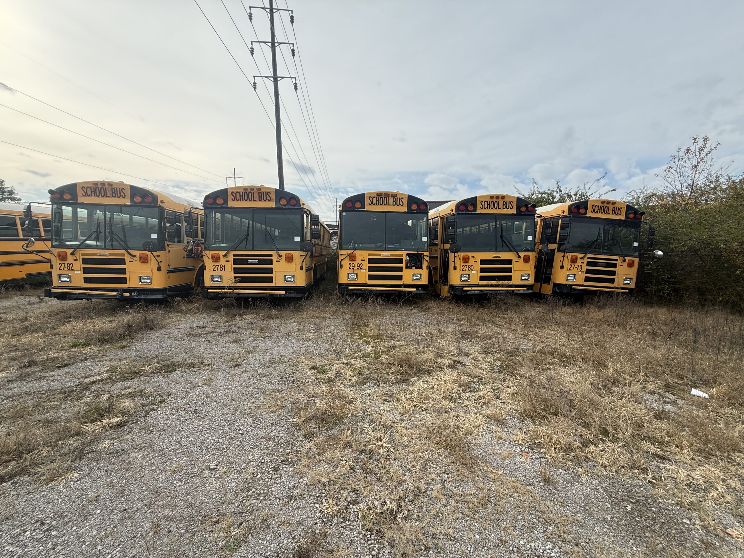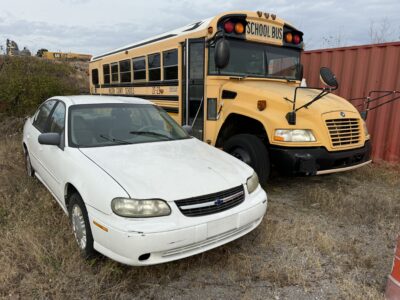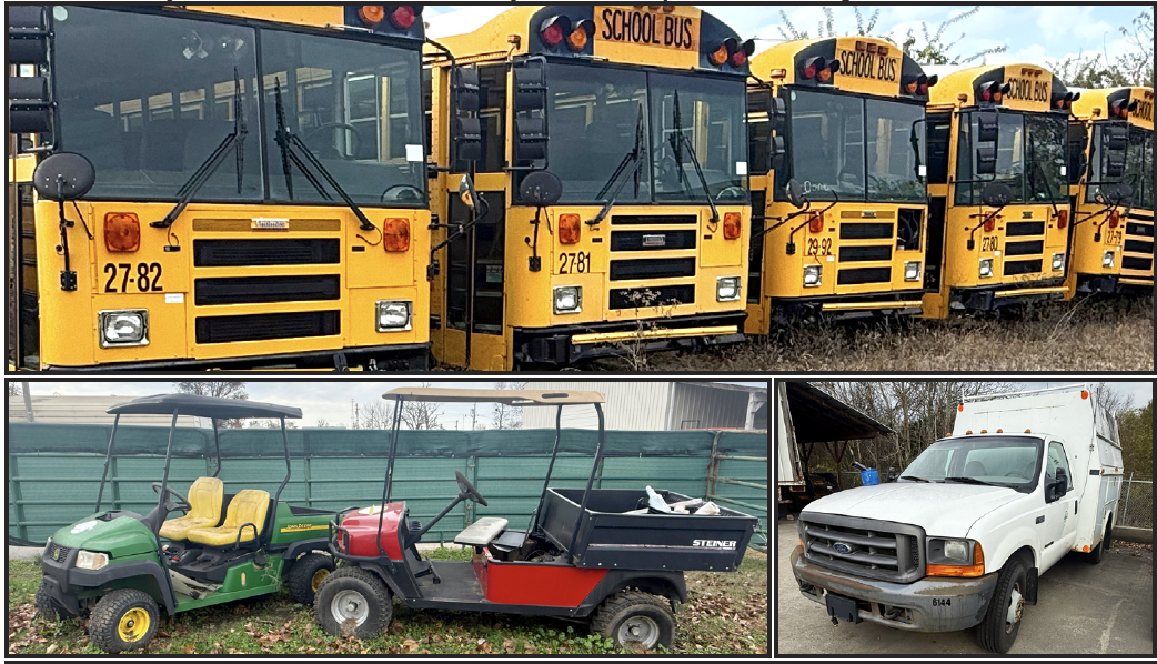 30 - Passenger Special Needs School Bus • 78 - Passenger School Bus - 8 • 1996 Chevy Truck 2500 • 1996 Ford Truck • 2000 Ford F350 w/ Utility Bed • 2000 Chevrolet Malibu 4-door • Allis Chalmers Forklift • Bobcat Skid Steer • Front End Loader • Golf Carts - 4 • Mowers • Spreaders • Aerators • Backhoe • Backhoe Attachment • Cultivator • Manlift