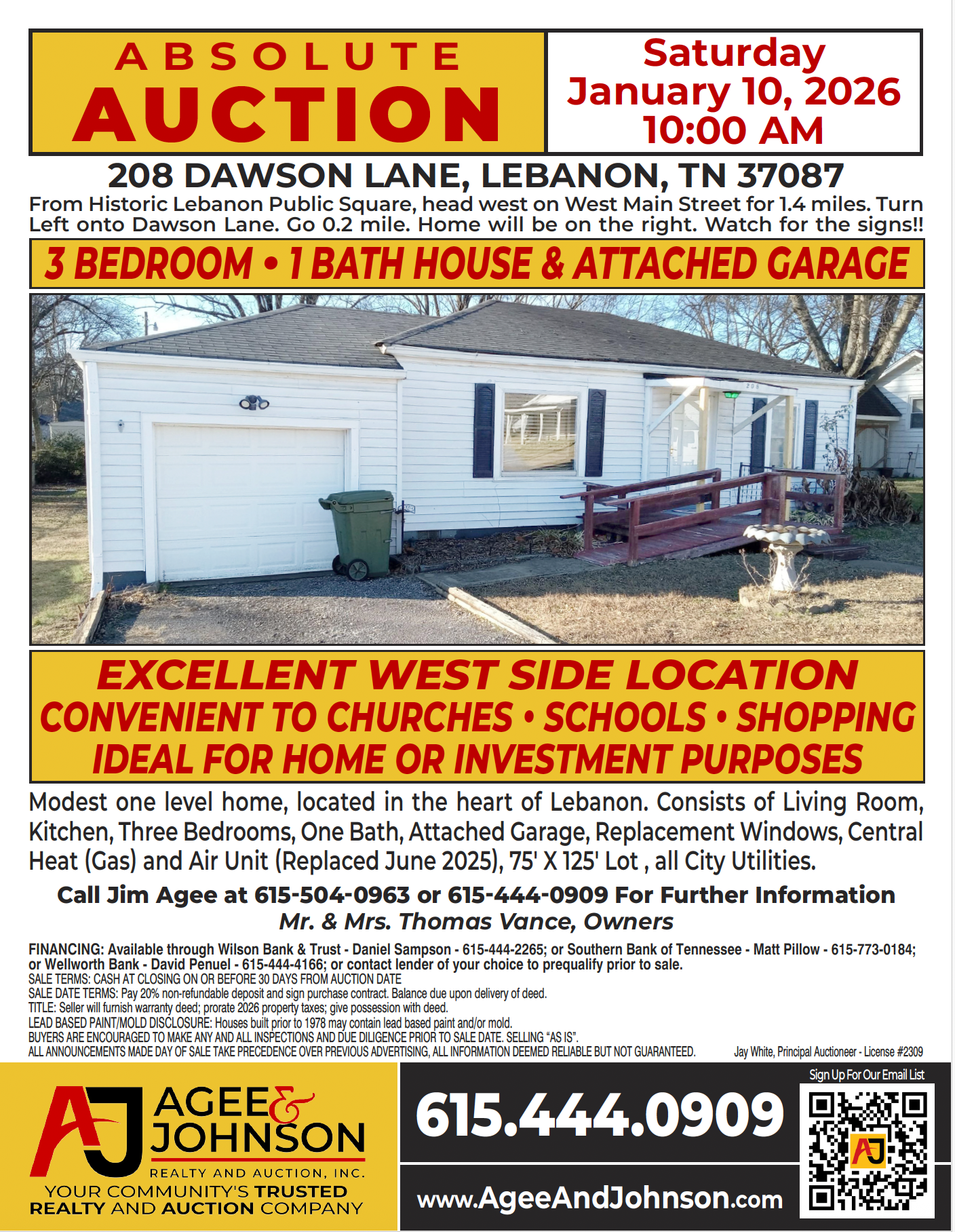FINANCING: Available through Wilson Bank & Trust - Daniel Sampson - 615-444-2265; or Southern Bank of Tennessee - Matt Pillow - 615-773-0184; or Wellworth Bank - David Penuel - 615-444-4166; or contact lender of your choice to prequalify prior to sale.