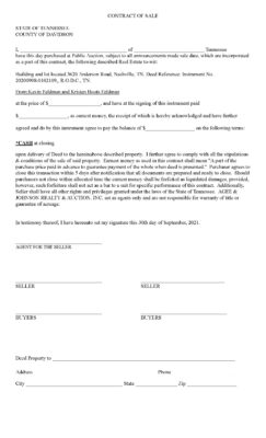 Sale Terms: Sale subject to seller confirmation. 10% Buyer Premium will be added to final bid price to determine final contract sales price. A 20% non-refundable deposit of the total contract price & a signed purchase contract required within 24 hours after close of auction. Balance due on or before November 1, 2021.