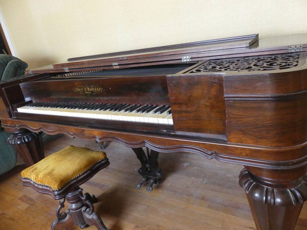 PERSONAL PROPERTY: Civil War Era Grand Piano with Stool - Albert W. Ladd & Co. (Boston) • Rocking Chairs • Antique 4 Shelf Lawyer Book Shelf • Spoon Carved Marble Top Dresser with Mirror • Marble Top Dry Sink • Elgin Pocket Watch (Gold) • American Waltham W. Co. Pocket Watch • Pocket Knives: Cas XX (3), Wade & Butcher (1), Buck Creek (4), Fighting Rooster (2), German Eye (1), Misc. Others