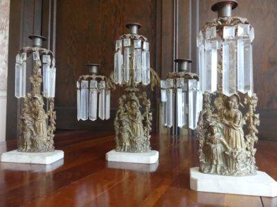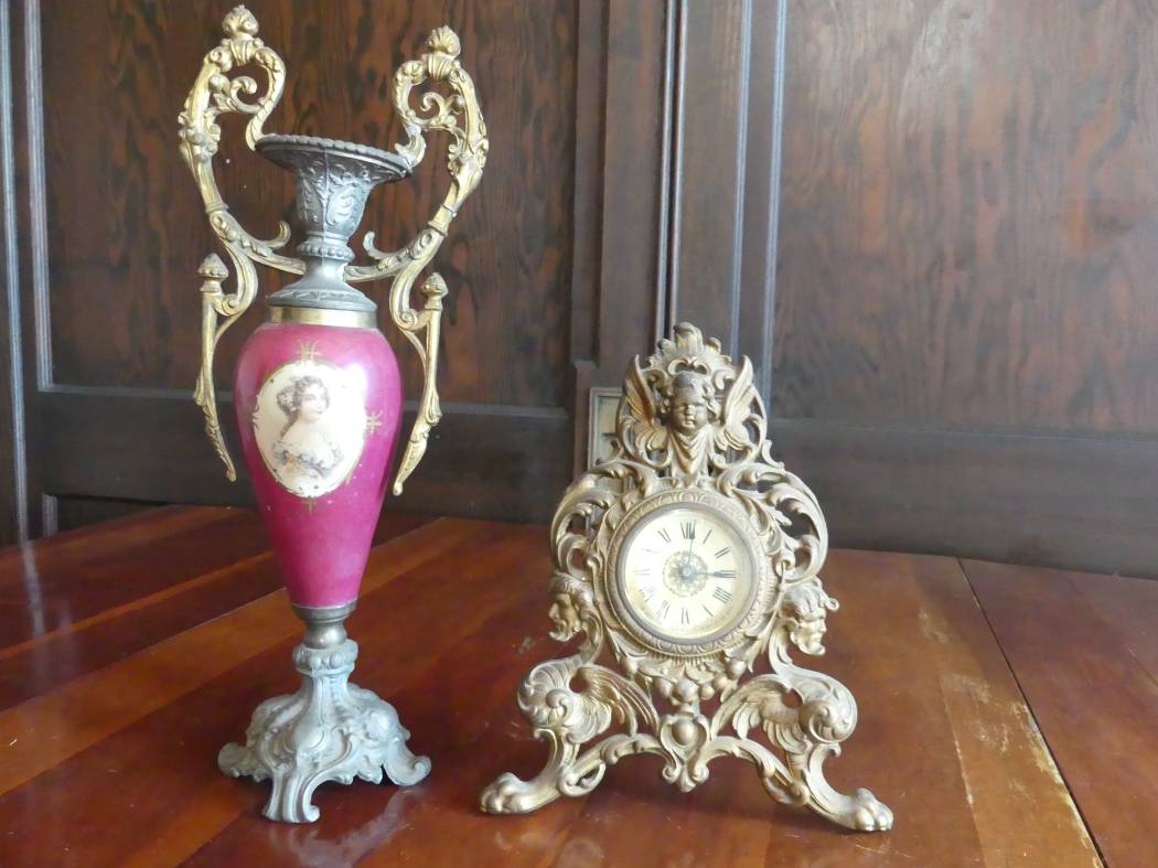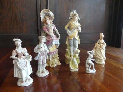 Glassware & China: W Dalton Imperial China, Homer Laughlin China, M-ZZ Austria China, Occupied Japan Pieces, Pfaltzgraff Everyday China, Johnson Bros England China, Jewell Tea Serving Bowl, misc China, Etched Glass, Milk Glass, Decorative Bowls and Dishes, Occupied Japan pieces, Copper Jello Molds, Oil Finger Lamps, Ceramic Figurines, Mantle Luster Set, Electric Lamps, Converted Ruby Lamps, Ewer and Mantle Clock, and more