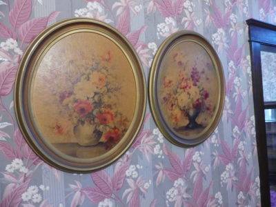Art and Mirrors: Signed Bird Dog, Story Time Picture, Watercolor Sketches, English Castle painted on Glass, Signed Oil Painting, Floral Paintings, Fabricated Picture Frame, Wall Mirrors and more