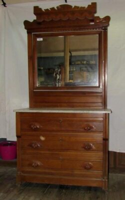 Furniture: Chairs, Desk, Mantle, End Table, Dresser, Gateleg Table, Tables, Walnut Baby Bed, Marble Top Table, Chifferobe, Walnut Bed and Dresser, and much much more