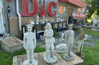 Lighted & Neon Signs; Marlboro, Pabst, Light House • Outdoor Signs; American, Cooper Tires, Coca-Cola, Dr. Pepper, Esso, Many Others • Cast Iron Yard Art; Urns, Flower Pots, Setees, Chairs, Benches, Tables, Stands, Other Pieces • Cast Iron Statuary Including Michaelangelo’s "David" Life Size Statue • Cast Iron Wood Stoves • 8 to 10 Dinner Bells (Various Sizes) • Concrete Yard Art Including Animals, Urns, You Name It • Large Assortment of Cast Iron Wheels • Enterprise Wood Cook Stoves • Cast Iron Wash Kettles • Park Benches • Windmills • Coca-Cola Button Sign • Train Light • RR Crossing Signs & Signals • C.I. Skillets, Dutch Oven, Tea Kettles, Bean Pots • Horseshoe Park Bench • Deleval Cream Separator • Electric Separator • Black Hawk Corn Sheller • Milk Cans • Iron Fencing • Fairbanks Scales • Old License Plates • 7-Up Drink Machine • Coca-Cola Cooler • A.T. Ferrell & Co. Seed Cleaner • Childs Pedal Tractor • 2 Man Cross Cut Saw • Well Buckets • Antique Hand Tools • "Walter Wood" Iron Imp. Seat • Several Cold Drink Coolers • Wash Tubs • Grinding Stone on Stand