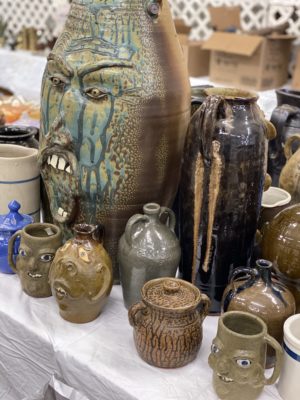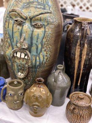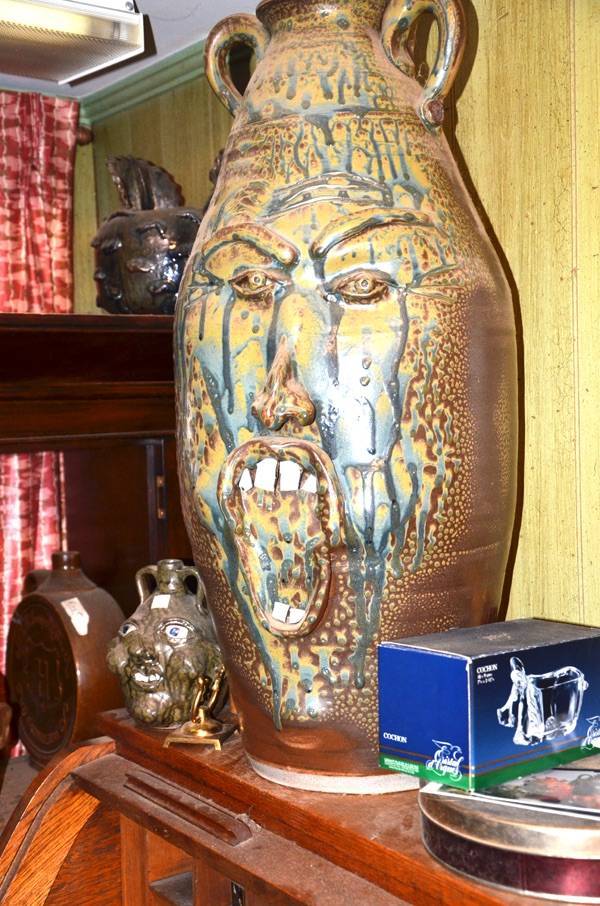 CROCKS/ STONEWARE : Approx. 30 Face Jugs • Stoneware Pitchers • Crock Jugs • Blue/White Salt Glaze • Misc. Crocks & Stoneware