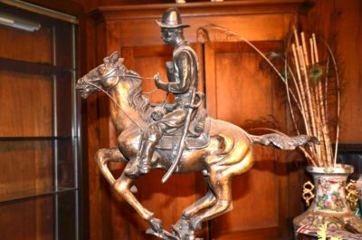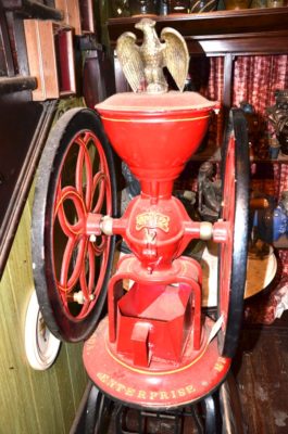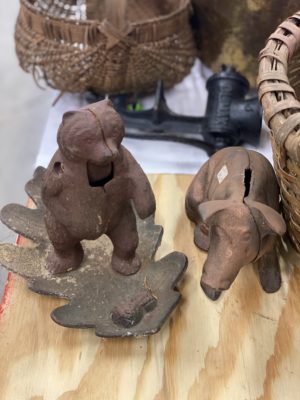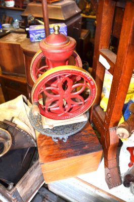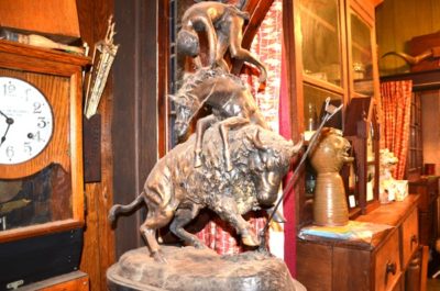 CLOCKS/ TELEPHONES/ BRONZES/ ETC : Cincinnati Time Recording Co Clock In Oak Case • Regulator Clocks • Mantle & Shelf Clocks • Round & Rect. Framed Mirrors • Underwood & Underwood Vue Master & Slides • J&P Coats 6 Dwr Spool Cabinet • Brooks 4 Drawer Spool Cabinet • Enterprise #12 Coffee Grinder • Crank Coffee Grinders • Many Wall Telephones • 25+ Walking Sticks • Rattlesnake Bronze By Frederick Remington • Trooper Of The Plains Bronze By Frederick Remington • Sculptures • Large Copper Bucket • Flat Irons • Iron Skillets • Teakettles • Bean Pots • Cornstick • Wooden Boxes • Wooden Planes • Old Baskets • Cast Iron Piggy Bank • Flying Pig • Dipper • Antique Horse Tricycle • Tonka Toys • RR Lanterns • Hot Towel Sterilizer • Childs Metal Lunch Boxes