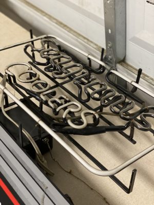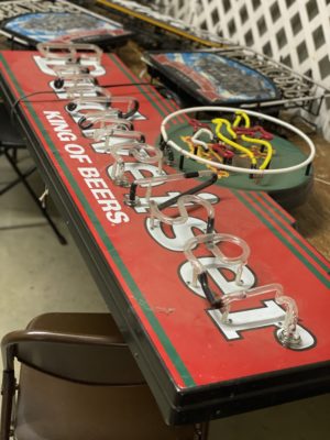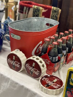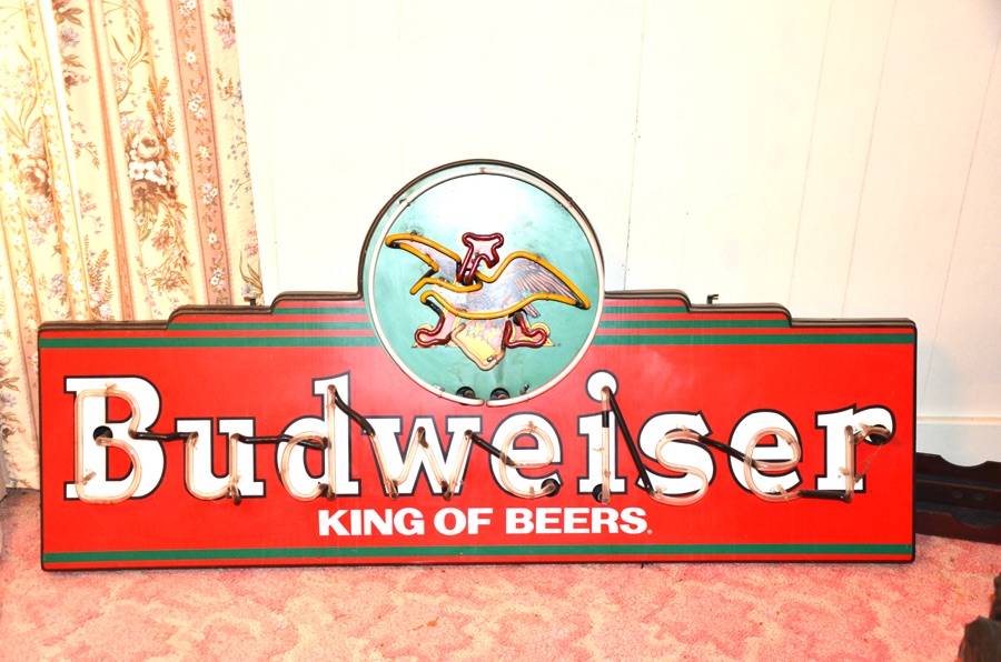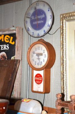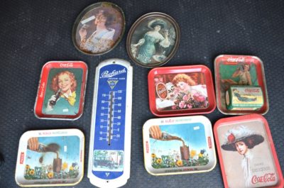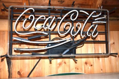 ADVERTISING : Dr. Pepper Wall Clock • Cigarette Signs, Camel, Phillip Morris, Prince Albert, etc.• 1960 & 1961 Thackston Service Station Calendars • Prince Albert Tins • Old Coca Cola Trays • Carolina Tobacco Picture • Neon Beer Signs, Budweiser, Pabst, Colt 45 • Coors Sign • Political Buttons • Coca Cola and Other Advertising • White Mountain Salesman Sample Ice Cream Freezer • Miniature Irons/Anvils