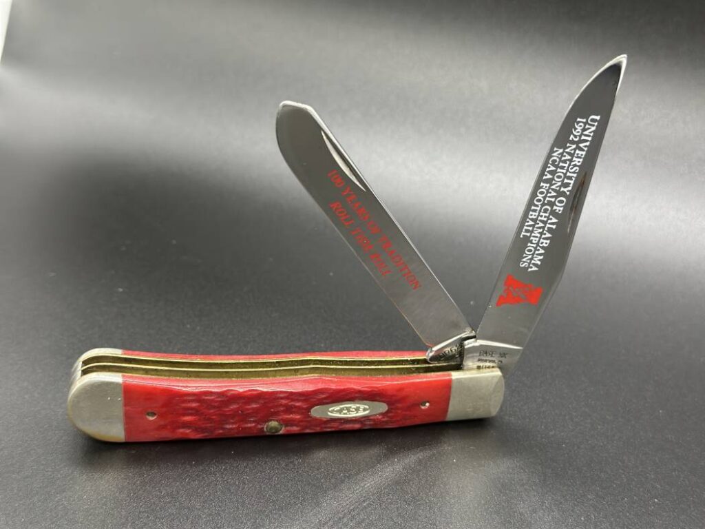 Case XX 6318he, 3 Blade • Case XX SS USA 53032, 3 blade • CASE XX LIMITED EDITION, One of 3000, Model number 11565, 2 blade • Case XX 2 Blade, New In Box, 06984 Trapper Dark Red • 194 Case XX Second cut Stag Series, Model 5205 R, Two Blade • Case XX Model 6254, Two Blade • Case X Razor Edge Model 5254 SSP • Case SS USA, National Knife Collector 1979, Model 5154 SSP NKCA 1979, Case Model 2331 • Case XX PA 1991 4 Blade • CASE XX LIMITED EDITION 1 of 3000, Stockman sunburst, 11564, 3 blades, 63032 SS, Box included • Hen and Rooster, New in box model number 412RPB, 2 Blade • Hen and Rooster-2 Blade, Box included, 412RPB • Hen and Rooster, Box included, 253DS, Country Whittler, 3 blades • Hen and Rooster, 4 blades, Engraved Hen and Rooster club 1985, #146 • Hen and Rooster, 2 blade, Model 212DS, Box included • Hen and Rooster, Box included, 2 blade, Model 412DS • Fighting Rooster, Engraved captain rooster, 4 blades, 0230, Frank Buster Cutlery co Germany • Queen, 3 blade, Model 76 • Queen, Model 66, 2 blade • Queen, 2 blade, #2 • Queen, 3 Blade • Queen, 2 Blade • Colonel Coon, Engraved, 4 blade • Fighting rooster, 4 blade, Engraved • George Wostenholm, Sheffield England, 2 Blade • Old Wostenholm, 1 XL, Congress with tobacco blade • George Wostenholm, Sheffield England, 1 blade • Kissing Crane, Robi Klaas solingen Germany, 4 blade • Joseph Rodgers and Sons, Engraved, 3 blades • Remington UMC, 2 blade • Case XX, 1 blade • Case 5X, 3 blades, 6.5375 • Case XX, MODEL 5392, 2 blades • Case XX, 3 blade, 6347 HP • Case XX, 4 Blade, MODEL 6488 • Case XX, Single Blade, P 197 LSSP, With knife holder • Case XX, 5 dots, Model 6375 • Case XX, MODEL DR 6254, Engraved university of Alabama national championship 1992 • Case XX LIMITED EDITION 1 of 2500, 2 blades, Muskrat • Case XX, 5 dots, Model 62131, Etched Indian in canoe, BOX INCLUDED • Case XX, 3 dot, One blade, Model 5154-NKCA 1979 • Case XX, 2 blades, Muskrat • Schrade Walden, Model 973, 4 blade • Voss Cutlery Co, Solingen Germany, 4 Blade, Model 573 • Voss Cutlery Co, Model 575, 4 blade • Voss Cutlery Co, Model 574, 4 blade • Voss Cutlery Co, Model 974, 4 blade • Schrade Walden, Model 774, 2 blade • Kane Cutlery Co, 3 blade • Remington UMC, R6073, 4 blade • Hibbard Spencer Bartlett, 4 blade • KA-BAR, N1B, V11/78, 2 blade • Shapleigh Congress By James F Parker, 4 Blade, Box Included • Shapleigh Congress by James F Parker, (3) Blade • Shapleigh Congress by James F Parker, (4) blade • Shapleigh Congress, Pearl cattle handle, (3) blade • Bulldog by master cutlery, 3 blade, Box included • Bulldog by Master Cutlery, (3) blades • 1996 Winchester, 4502, (4) blade • National Rifle Association Knife, Model 440, SS, 1 blade • Case XX, 7 dots, 63hp, SS P • Case XX, MODEL 6318 HP, 3 blade • Case XX MUSKRAT, 2 Blade • Case XX, 5347, 3 blade • Case XX 6347, 2 Blade • Case XX, MODEL 6347, 3 Blade • Case XX, 05534, Box included • Case XX, 03576, 4 blade • Case XX, R6318 • Case XX, 6254, (2) blade • Case XX, 64052, (4) blades • Boker Limited Edition 1568, Limited edition civil war knife, Box included • 1972 Boker limited edition, Solingen, Model 7588 • Boker limited edition, 1933, Swiss commemorative • Remington Limited Edition 2007 Kasey Kayne red • Remington limited edition, Mini trapper, Silver bullet knife, 1 of 5000 • 1979 Boker Limited Edition, The stern wheeler #280, Box included • Browning knife #322184, (4) blade • Buck Esquire knife, #501 • Buck Knife 0322 • Uncle Henry knife, #885UH Schrade knife, Box included • Frost Cutlery, Razor folder, #17-088 • Buck knife, single blade • Zippo Salesman Sample, ASPLUNDH • Queen, Stag handle, (2) blades • Queen 76, Stag Handle, (2) blades • Schmidt and Ziegler EL, Toro 294 folding hunter knife • American Knife Co, Sabre 212, Solingen Germany, (2) Blade • Queen 76, The Plainsman, #1480 • Buck Knife 112 Ranger • German Eye Brand, Large Sodbuster, 99y • Owl head, (4) blade • Old Hickory, 3 blade • Russel Arrow Barlow, One blade • Russel R Arrow, Broken blade • Remington M105, 3 blade, Stag handle • Case XX SS, Model 52032 • Case XX 6 Dot, ENGRAVED National Knife Museum 1984 • Case XX, 3 dots, 6254 SSP • Case XX, 6488, (4) blade • Case XX, 2 dots, 4 blades • Case XX, MODEL 6488, 6 dot • Case XX, (2) blade • Case XX, (10) dots, (4) blade • Case XX, 6 Dots, 2 Blades • Case XX, (10) dots, 2 blades • ZWilling J.A.Henckels, (4) blades • Boker American proclamation • Old Timer, #80 T • Buck Creek, Bobcat 4 blade • First Cutlery, Tobacco Congress 4 blade • John Primble the colonel 3 blade • Buck #301 3 blade • York, #620R, (2) blade • John Primble, Barlow #5922 2 blade • Belknap Barlow, Bluegrass 2 blade • Soligen Boker 3 blade • Boker Tree Brand 4 blade • Eagle Brand Cutlery, Single blade bone handle • Barlow, Hunter brand 2 blade • Schmidt & Ziegler, 2 blade • Craftsman 3 blade • Schrade, Walden NY USA 3 blade • Robi Klaas 4 blade ivory handle • Robi Klaas 2 blade • Sears craftsman 3 blade • John Primble beek #5385 3 blade • Western Concave ground 3 blade • I •XL George Wostenholm 3 blade • Cattaraugus Cutlery, 2 blade bone handle • Case XX #00189 with sheath and box included • Case XX #5488 4 blade • Case XX #6383 3 blade • Case XX #6275sp 2 blade • Case XX #6392 3 blade • Case XX #8392 3 blade • Case XX #6254 2 blade • Case XX # 33092 3 blade • Case XX #5265 sab 2 blade • Case XX #c61050 sab 6 dot single blade • Case XX buffalo edition single blade • Premium stock 3 blade • John Primble #711 4 blade • Soligen handforged 3 blade • Novelty Cutlery Co., Single blade bone handle • Camillus #91 3 blade • Soligen Black Widow 3 blade • Schmidt & Ziegler el Toro 3 blade • Schrade single blade #lb5 • John Primble 3 blade • John Primble #98g5